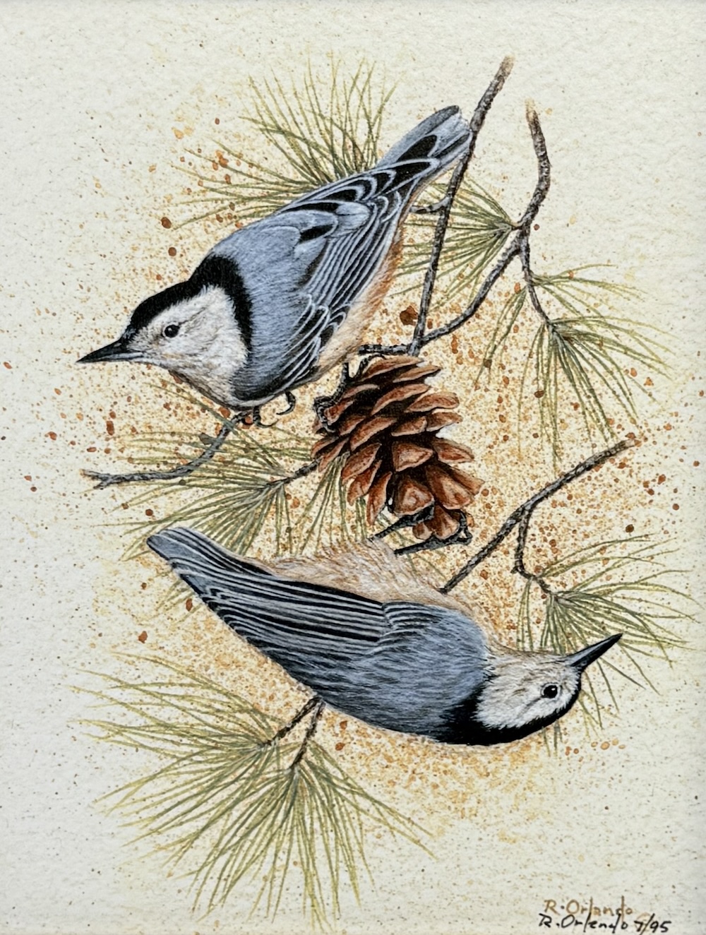 For nuthatches, family is at the heart of everything. Most often mating for life, these devoted pairs work side by side to raise their young. In Ron Orlando’s Double Take, a bonded pair is captured in their element—quite literally hanging out together in perfect harmony.