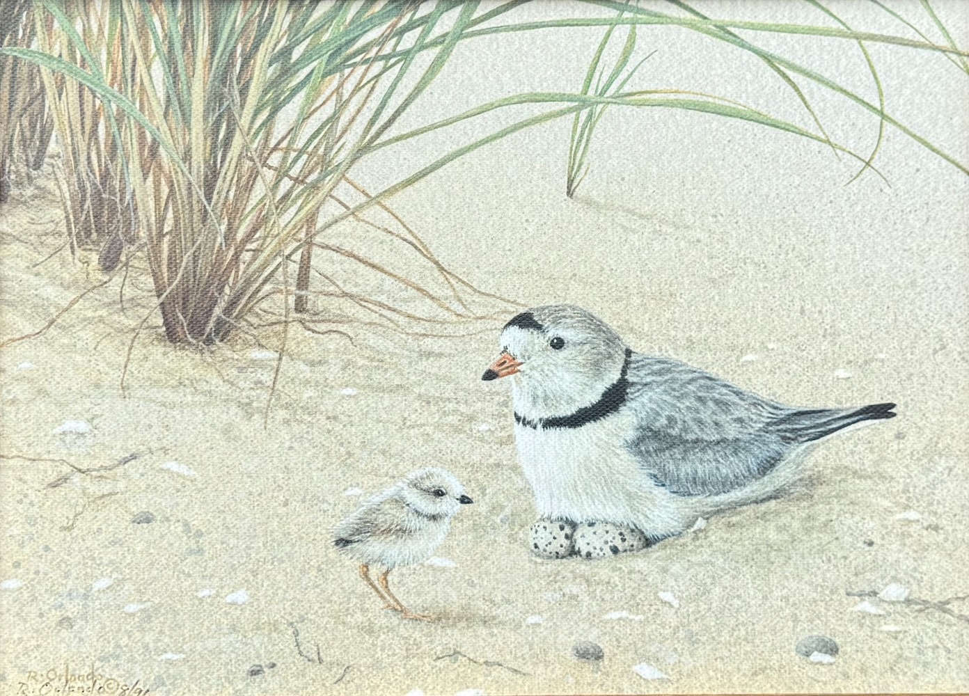 The very first sandpiper chick to emerge from its shell pauses for a moment beside its mother. Soon, its siblings will hatch and join the family, ready to learn the timeless dance of chasing the surf in search of their first meal. š Ron's āFirst Born" is available as an 8" x 10" giclee on stretched canvas, in a frame designed by the artist himself. š Each print comes with a Certificate of Authenticity signed by Ron.