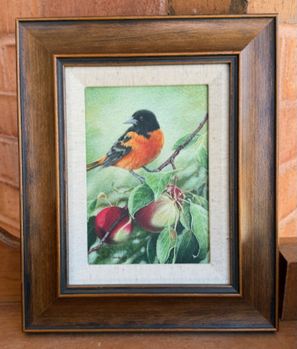 “What interests me most in creating wildlife art is presenting a moment in time.” At the moment of the "Orchard Visitor" this song bird might be thinking which apple looks tastier! But we can only guess at what might be on this little bird's mind. 🍃 "Orchard Visitor" is available as a 5” x 7” giclee on stretched canvas, in a frame designed by the artist himself. 🍃 Each piece comes with a Certificate of Authenticity signed by Ron.